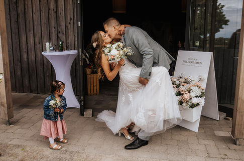 D & J hatten alles vorbereitet für eine traumhafte Sommerhochzeit im Beekmanns Hof in Essen. Mit viel Liebe zum Detail wurde dekoriert, geplant und gestaltet, und die Vorfreude auf einen Tag voller Sonnenschein, Lachen und Leichtigkeit war riesig. Alles war bereit für ein Fest unter blauem Himmel.